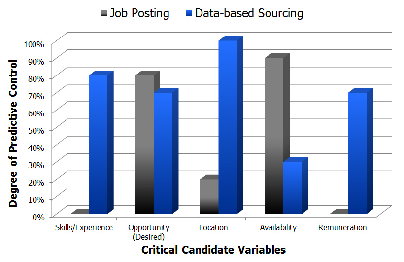 Whether recognized or not, the reality is that posting jobs is a passive and reactive method of talent attraction that affords very little predictive control over 3 out of 5 critical candidate matching variables (0% for two of them), and this latter point cannot be overlooked or minimized. The ability to exert a high degree of predictive control over the SOLAR variables affords a company with a corresponding ability to increase the probability that they people they are finding and attempting to recruit are well qualified and matched to any specific job and the company, whether the people are “active” or “passive.”